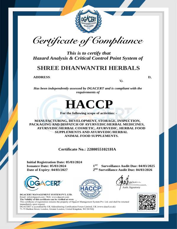 View CertificateWe maintain HACCP (Hazard Analysis and Critical Control Points) standards to ensure safety and quality across our manufacturing and packaging processes.